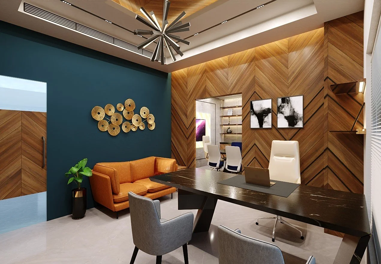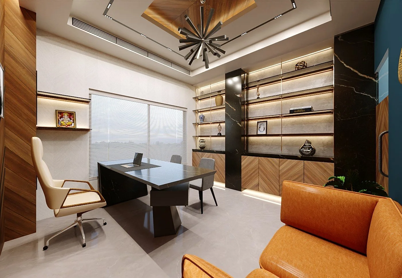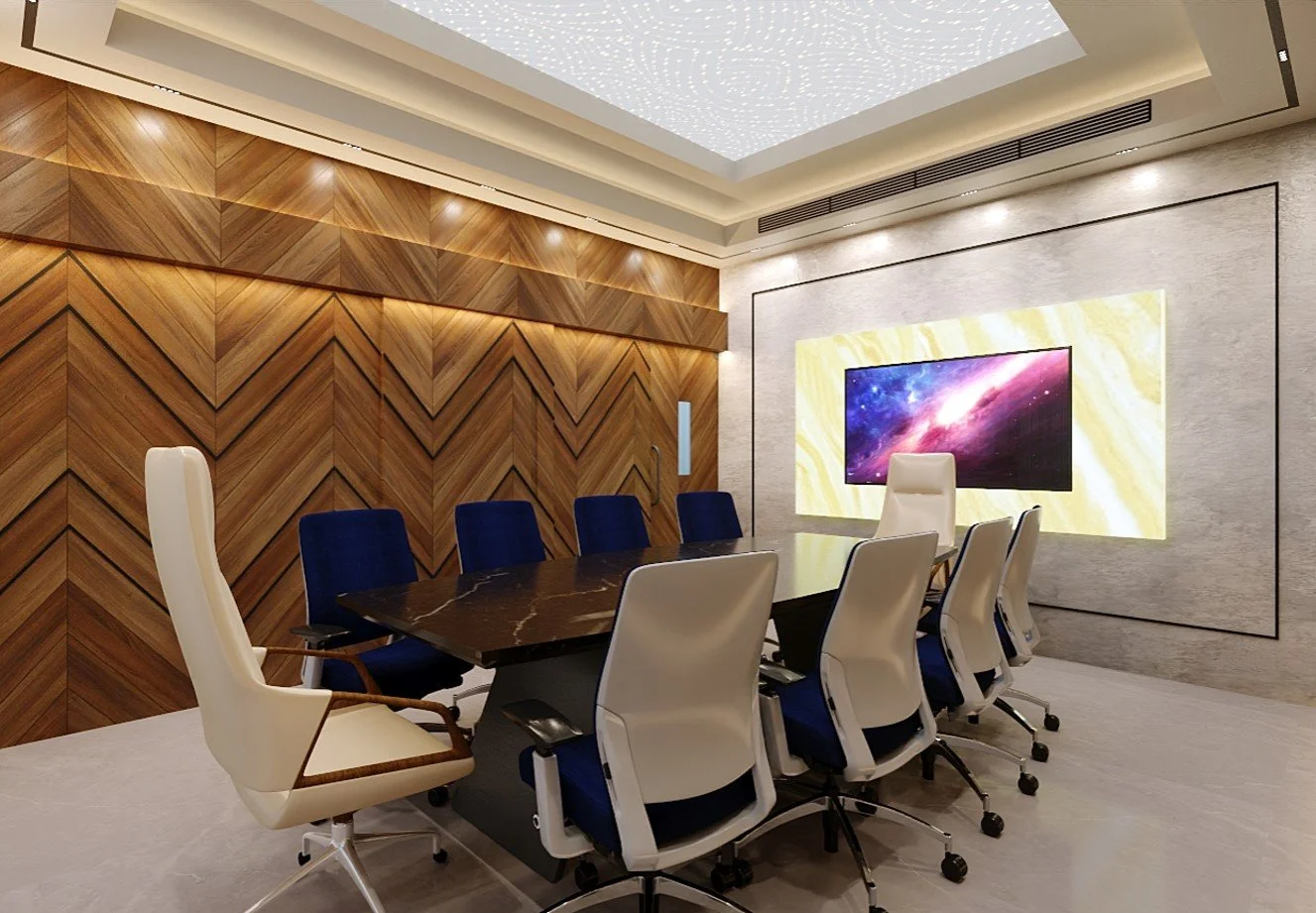 Renovation & refurbishment of 2 rooms - The Directors Cabin & The Conference Room of a Bangalore based premium Builder’s head office. The design upliftment was in accordance with the company’s rebranding, giving the space the feel & finesse just like its real estate properties.
