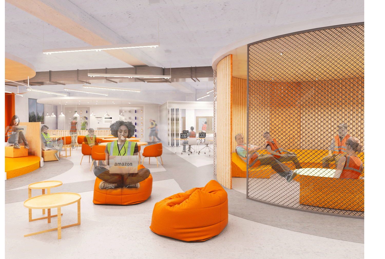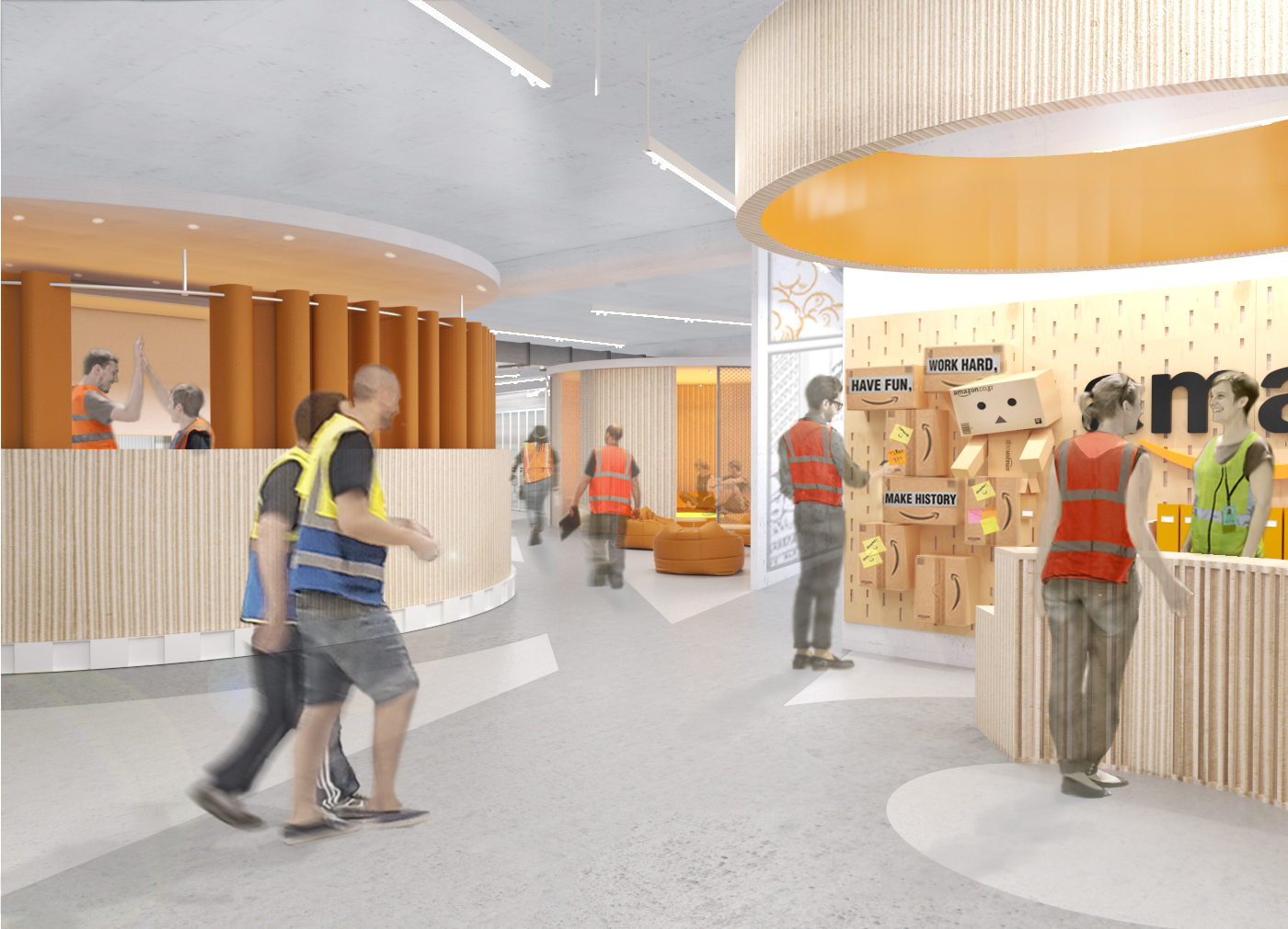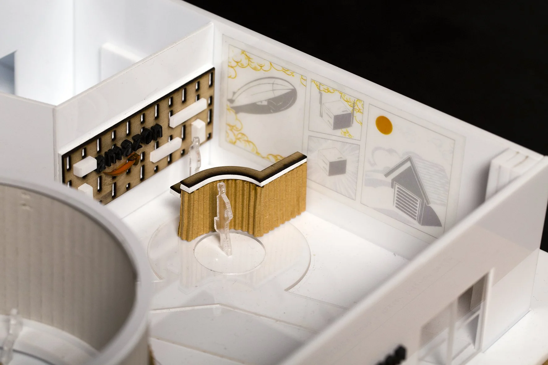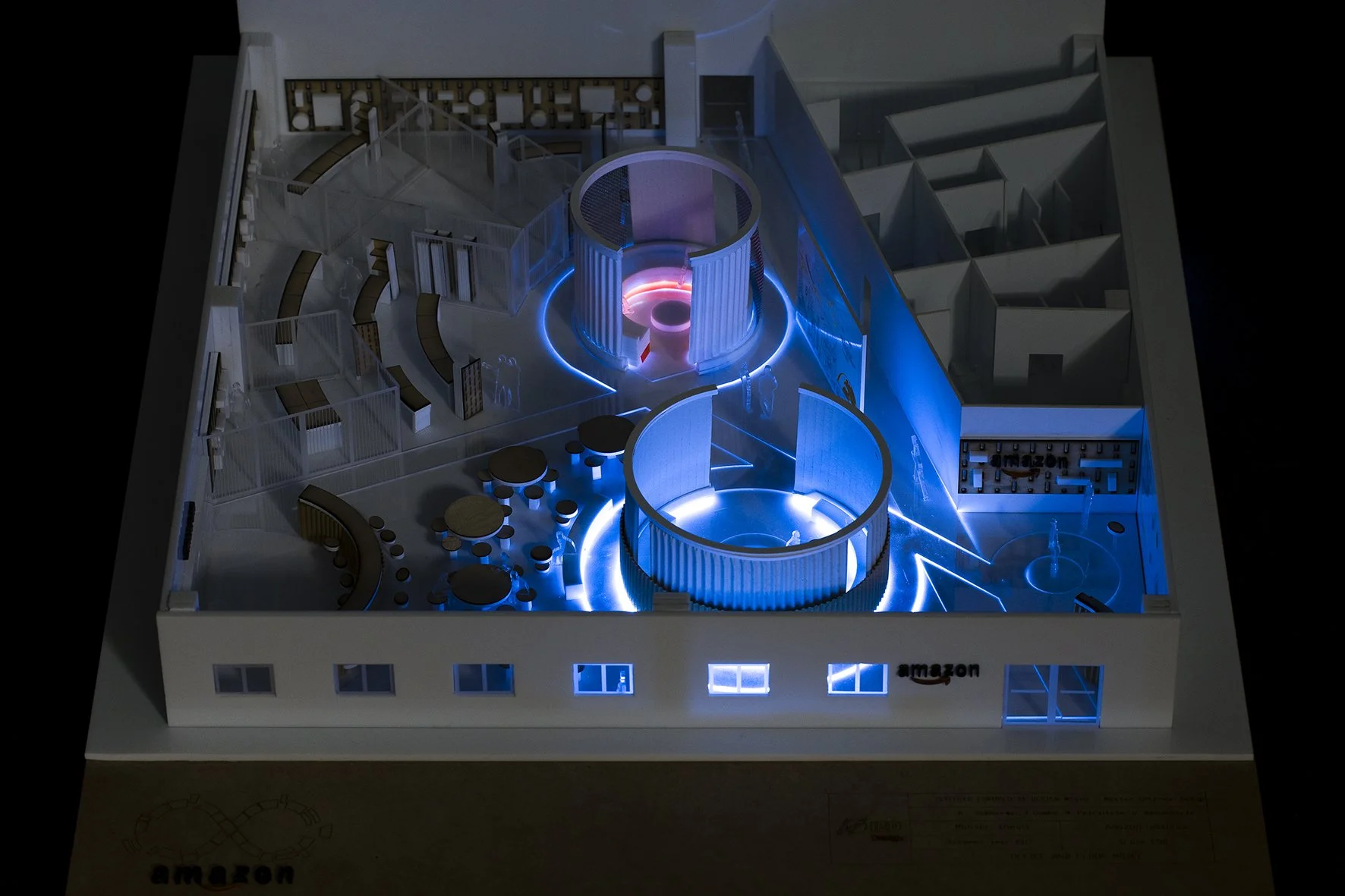 With a vision to transform what Amazon provides - unlimited experiences to people through a digital platform using simplicity and personalisation as the main tools, into a physical experience, a limitless space is visualized through an infinity symbol which binds all the existing areas together, creating an environment that is fluid and contains unlimited possibilities, indicating that the space has no start or end.