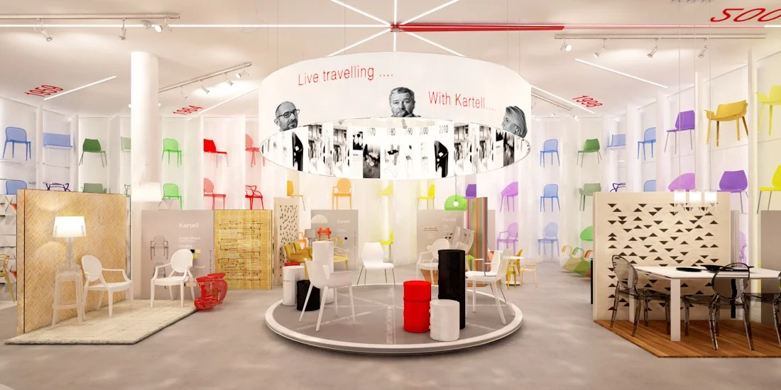 A project to design Kartell showrooms to showcase the brandās rich and deep history. The idea was to bring the varied global experiences into one store and allow the customers to travel without actually physically transporting themselves. This concept lets the customers travel in the present of the brand, connecting them to its history and visualising the future.